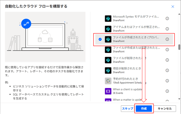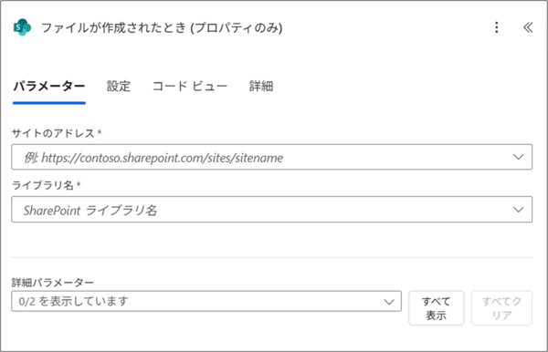 1. トリガーの設定:ファイルが作成されたとき(プロパティのみ)