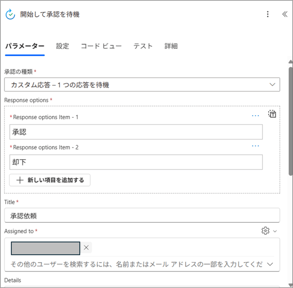 アクションを追加して、必要な項目を入力します。