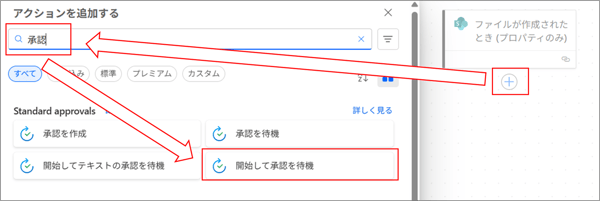 2. アクション追加①:開始して承認を待機