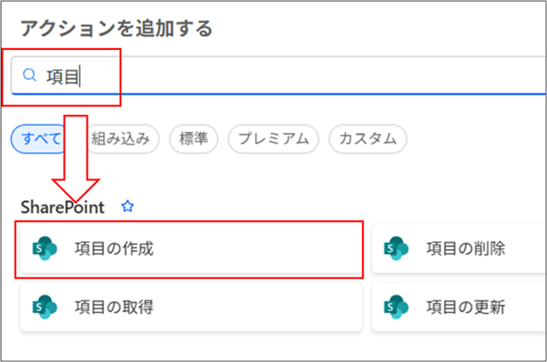 5. アクション追加④:結果を SharePoint リストに記録